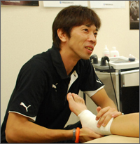 国家認定 柔道整復師としての施術に加え、Jリーグトレーナーとして(名古屋グランパス)これまで培ってきたテーピングやストレッチに関する技術を活用して、スポーツに取り組む方の身体機能向上から、ご年配の方の機能障害の改善まで、あらゆるご要望にお応えします。
